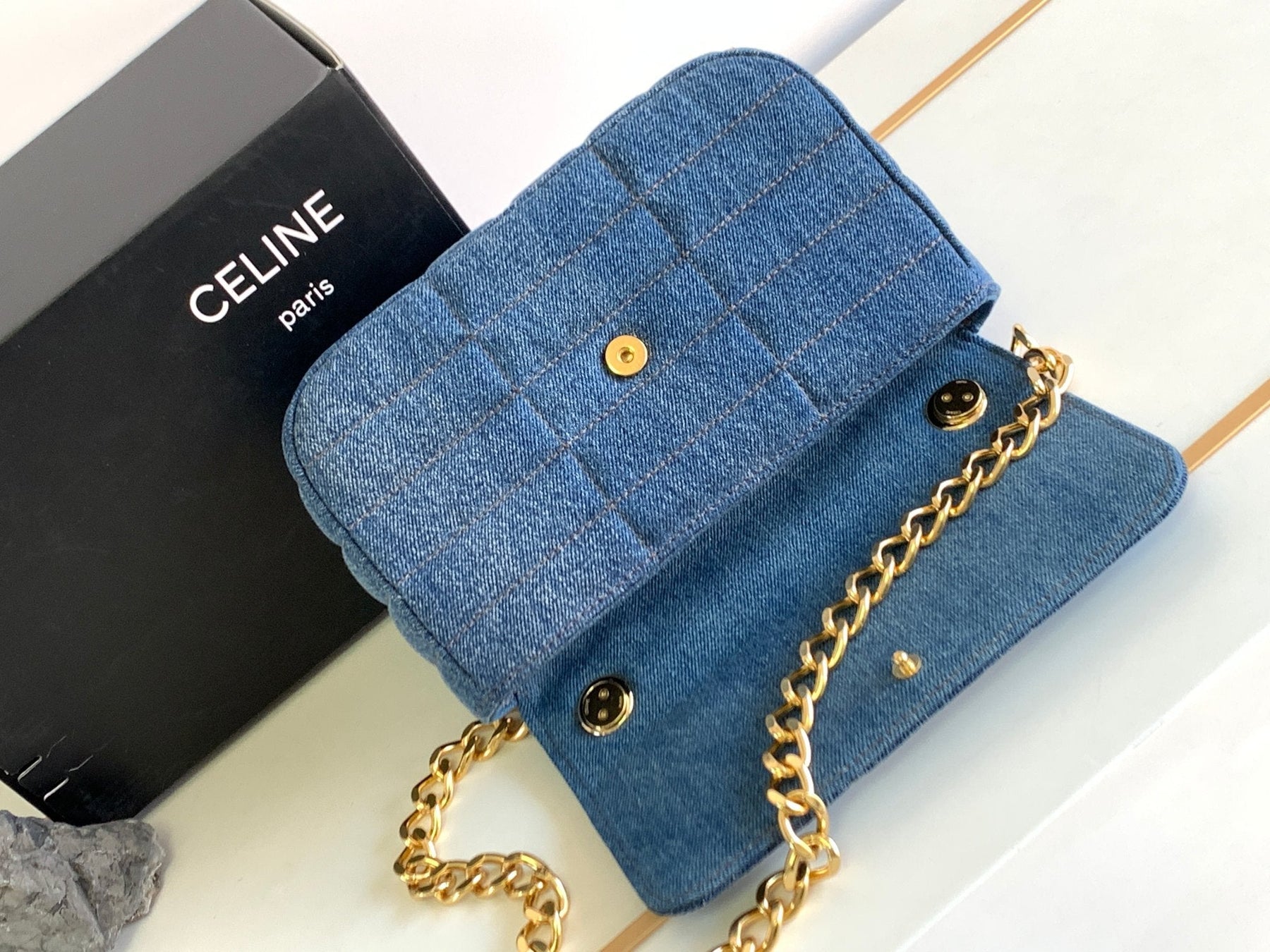 DENIM LEATHER 24 CHAIN SHOUDER BAG