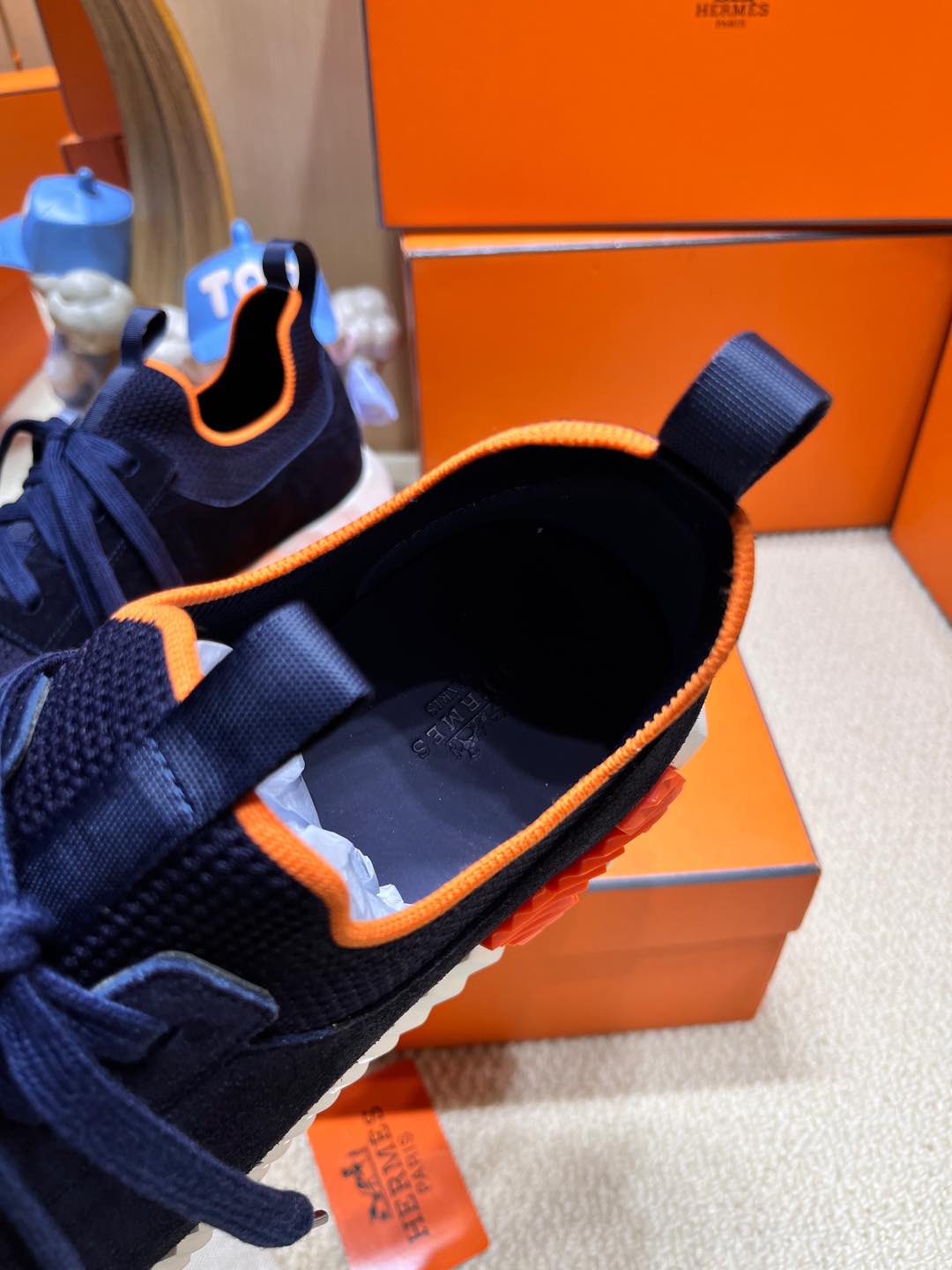 DEPART SLIP-ON SNEAKER IN NAVY BLUE KNIT AND CALFSKIN