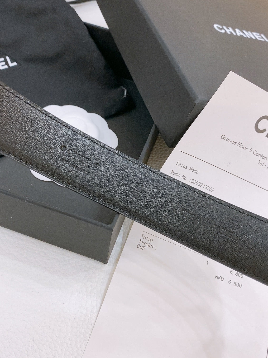DOUBLE C BELT 30MM IN BLACK QUILTED LAMBSKIN WITH GOLD RESIN BUCKLE ENGRAVED LOGO