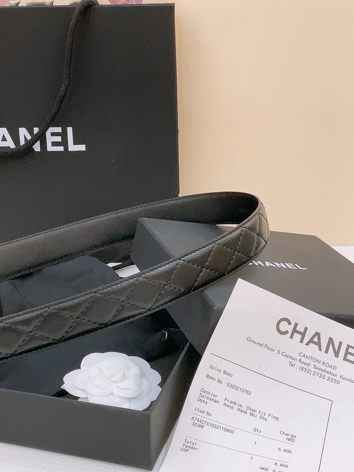 DOUBLE C BELT 30MM IN BLACK QUILTED LAMBSKIN WITH SILVER RESIN BUCKLE EMBOSSED LOGO