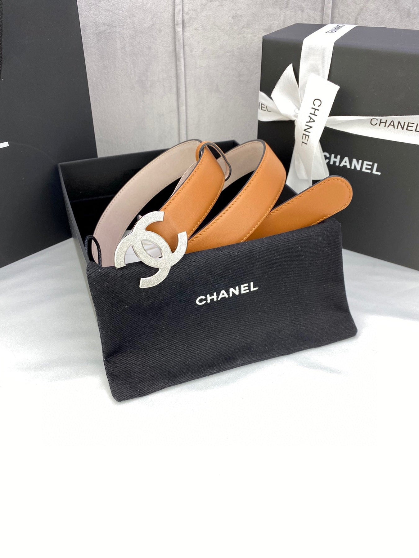 DOUBLE C BELT 30MM IN BROWN CALFSKIN METAL BUCKLE