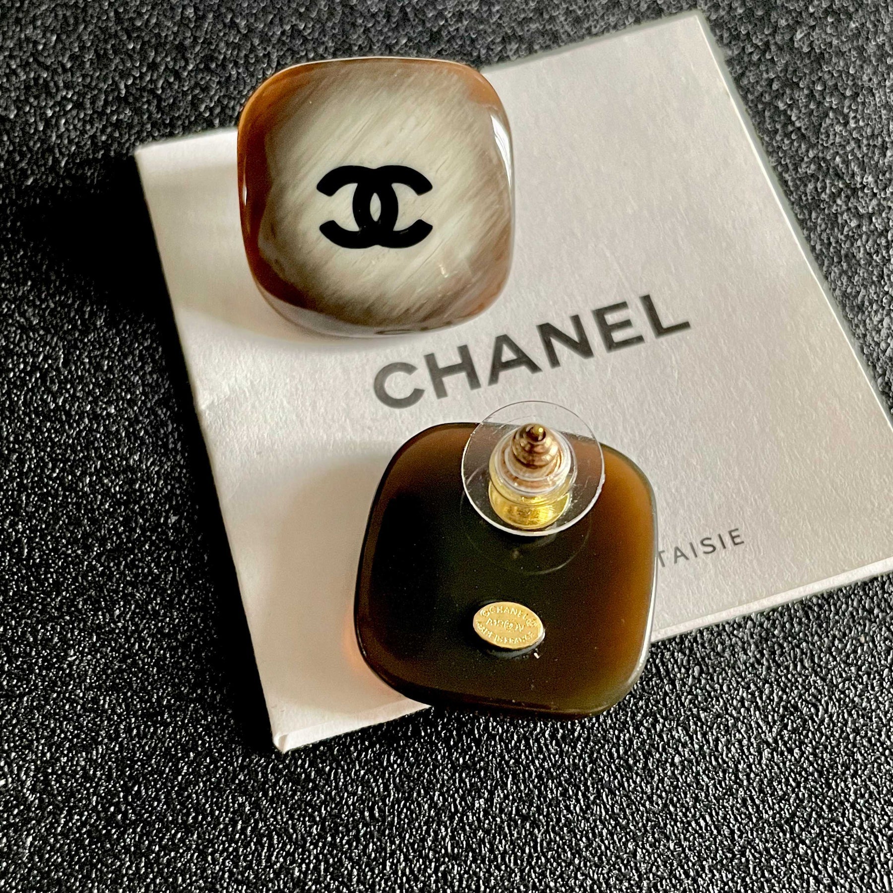 DOUBLE C STUD EARRINGS IN IVORY-TO-BROWN RESIN PATTERN