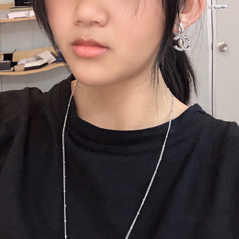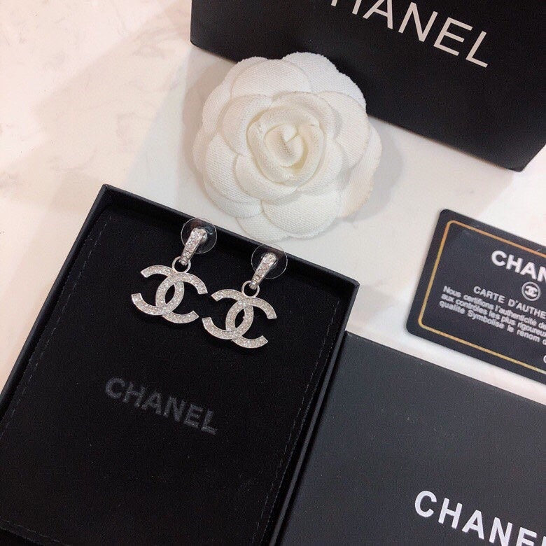 DOUBLE C STUD EARRINGS IN SILVER METAL FULL WHITE CRYSTALS