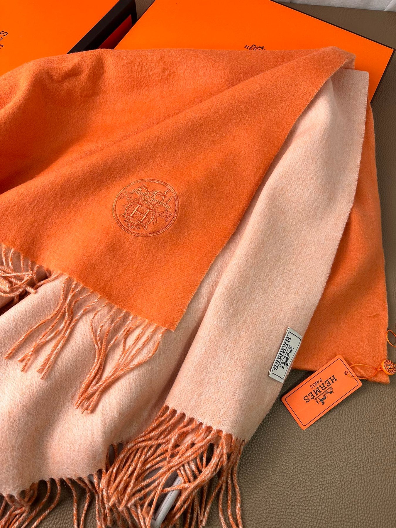 DOUBLE-FACE SCARF 200 CM IN TIGER ORANGE CASHMERE