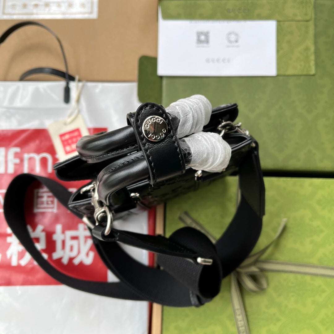 EMBOSSED TOTE BAG 20 IN BLACK CALFSKIN