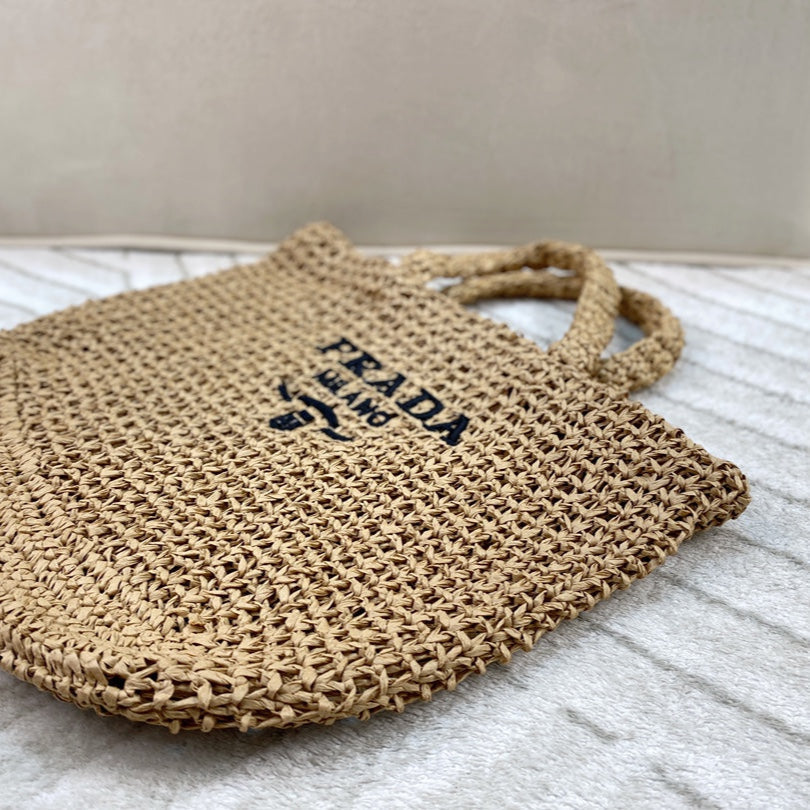 EMBROIDED LOGO TOTE BAG 38 IN BEIGE WOVEN RAFFIA