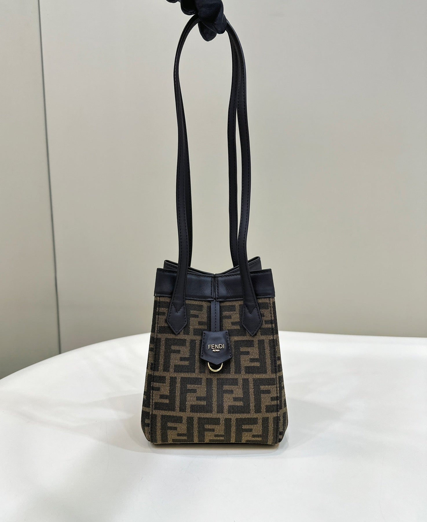 FENDI ORIGAMI MINI 19 BROWN MIX BLACK FF JACQUARD FABRIC BAG