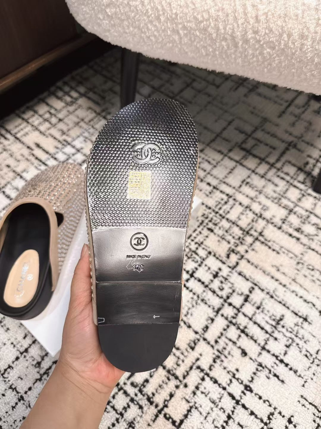 FLAT MULE IN LIGHT BROWN SUEDE WITH CRYSTALS