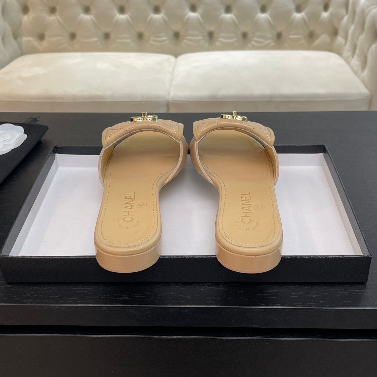 FLAT MULE IN TUSCAN BEIGE LAMBSKIN