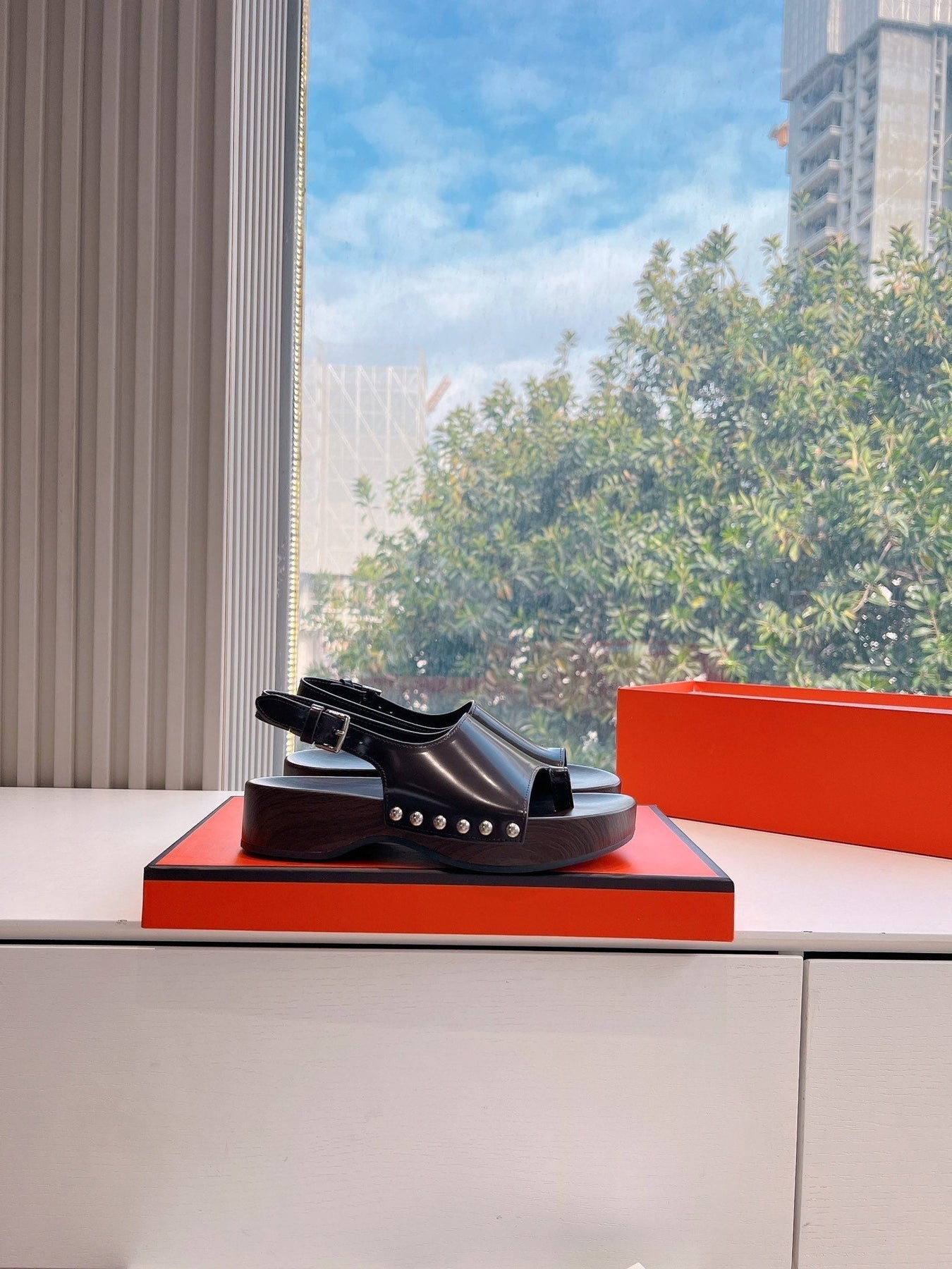 FLAT SANDAL IN BRUNETTE BROWN CALFSKIN