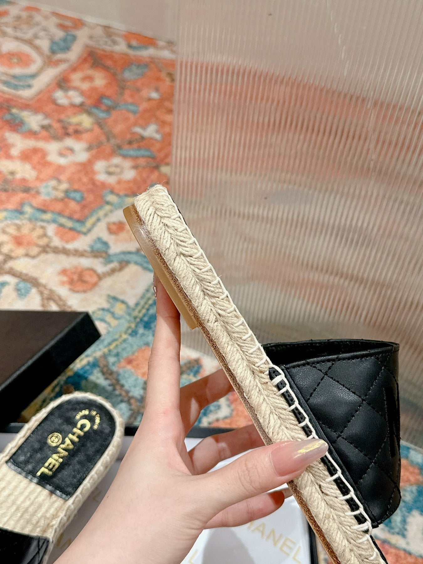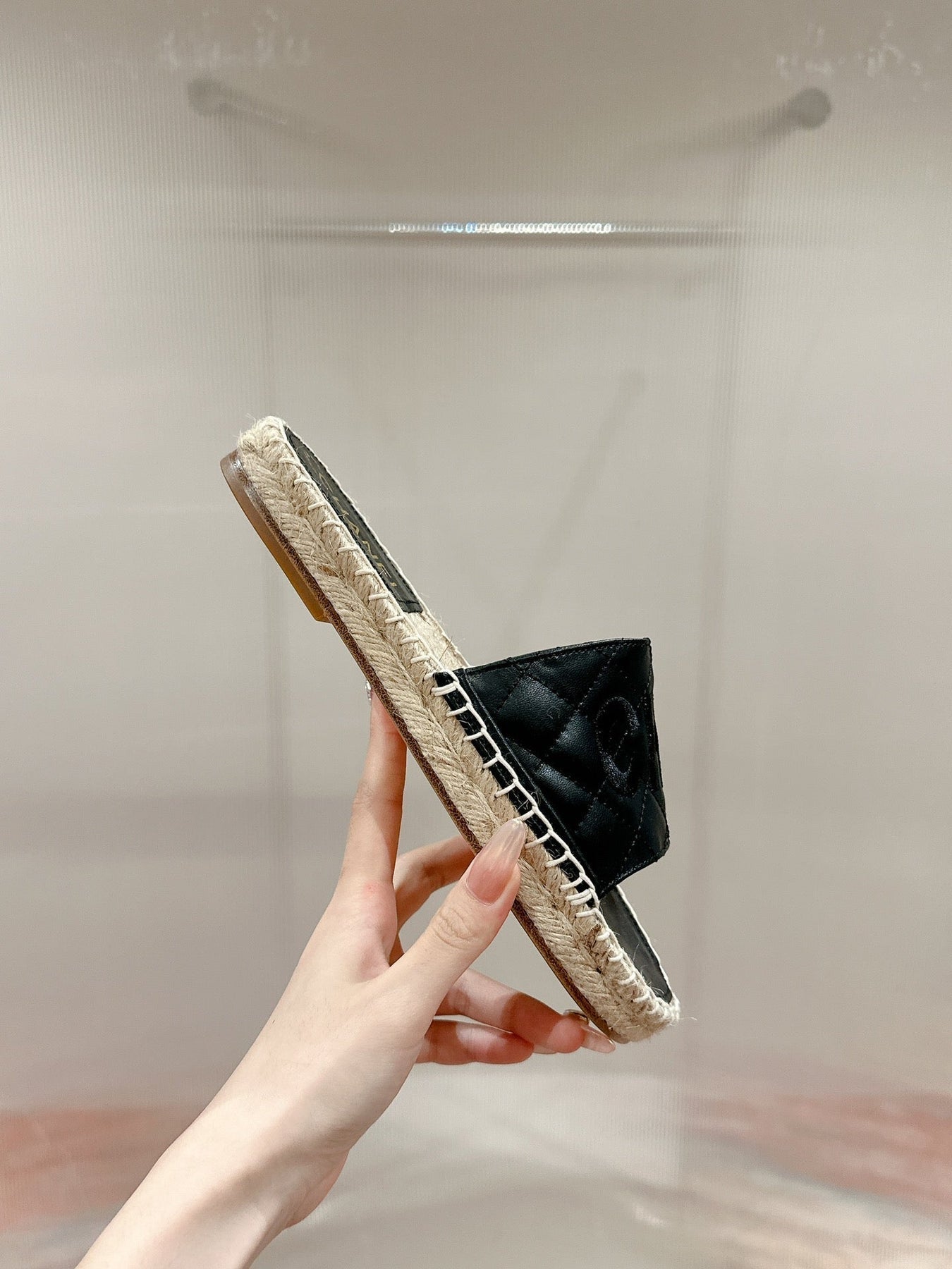 FLAT SLIPPERS IN BLACK LAMBSKIN MIX BEIGE WOVEN