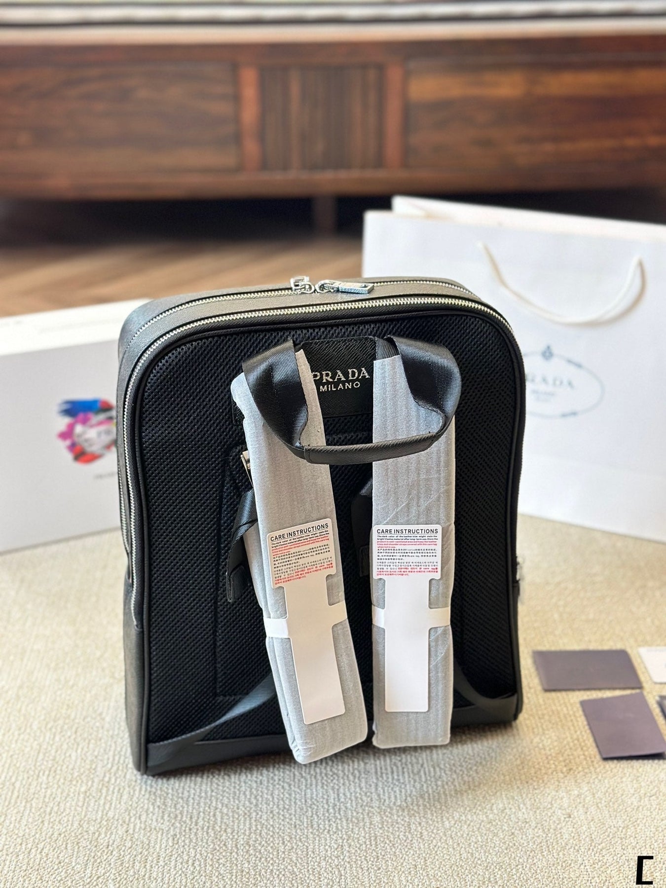 FRONT ZIP POCKET BACKPACK 38 IN BLACK GRAINED CALFSKIN