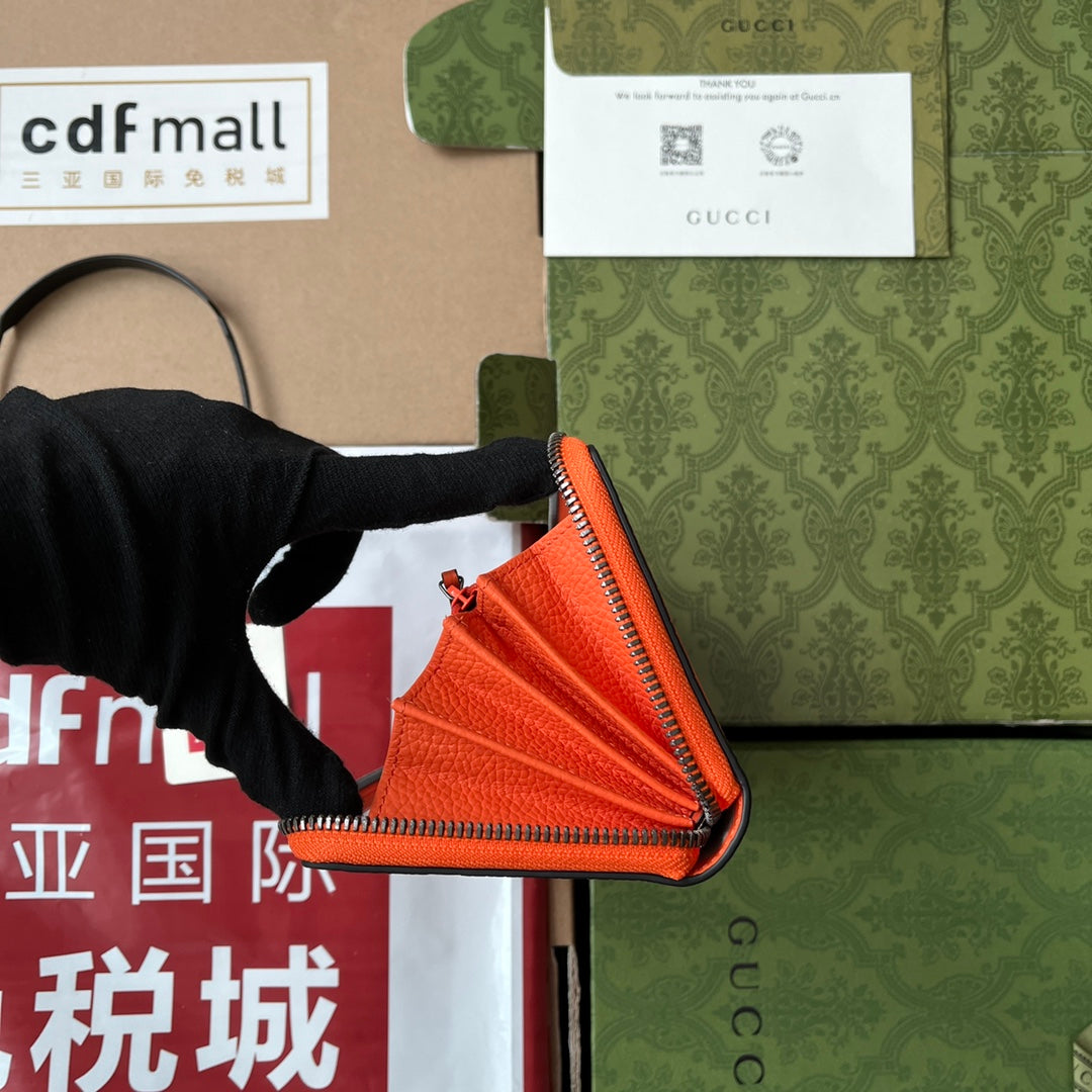 FULL-ZIP WALLET 19 IN ORANGE EMBOSSED CALFSKIN