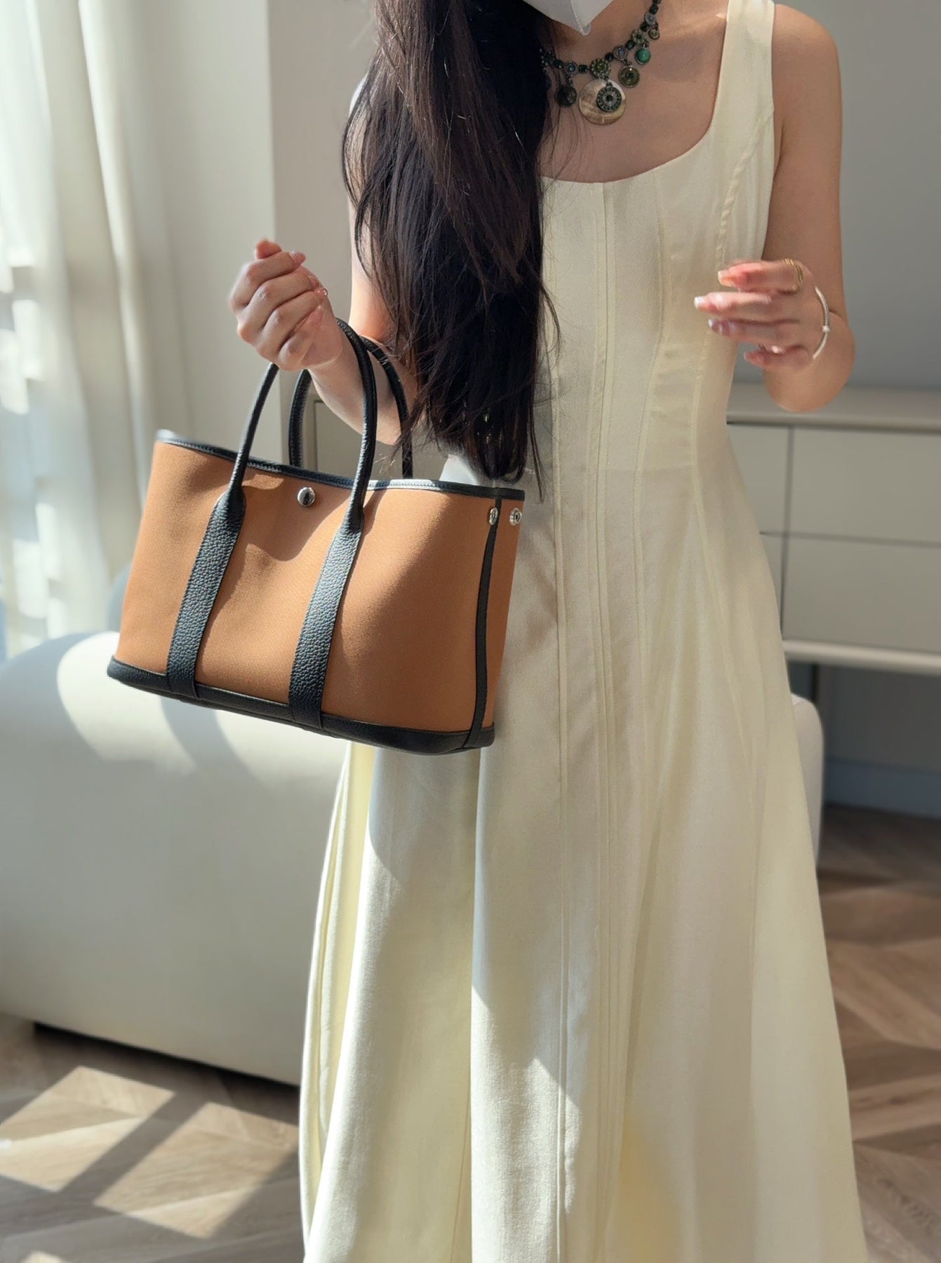 GARDEN PARTY 30CM IN ORANGE MINIMUM TOILETS COTTON CANVAS AND BLACK CALFSKIN