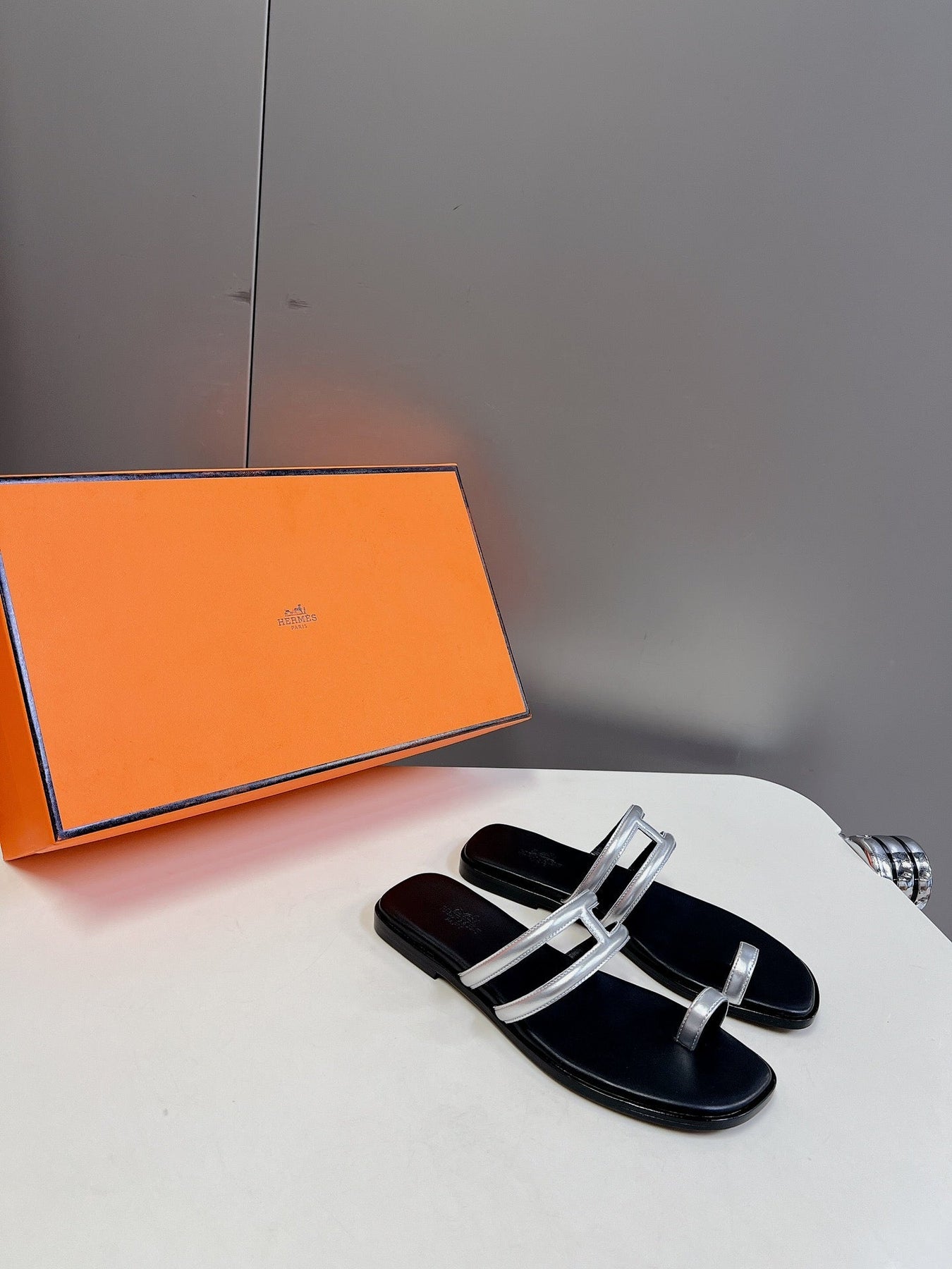 Georgia Sandals Silver Black Calfskin