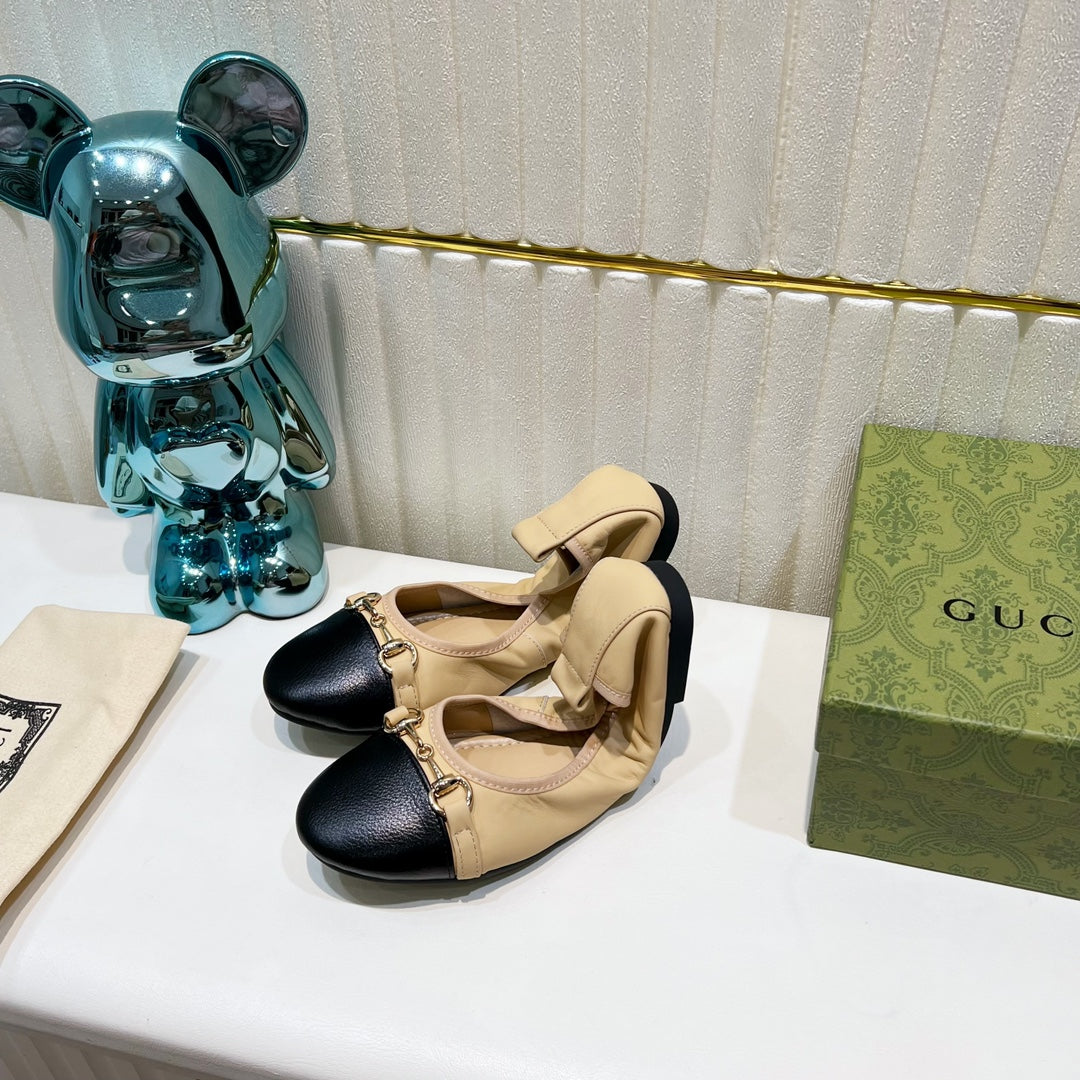 GG BALLET SUPER SLIM BUCKLE BLACK AND CREAM LAMBSKIN
