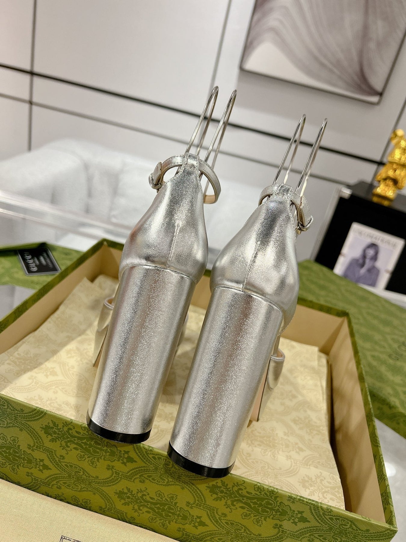 GG CRYSTALS PLATFORM PUMPS SILVER CALFSKIN