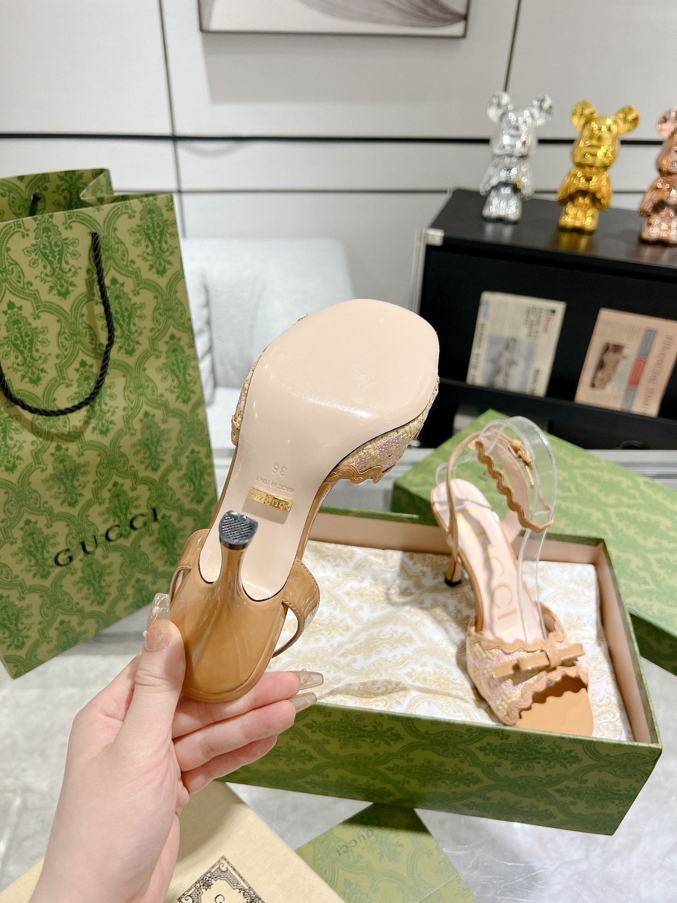 GG HIGH - HEEL SANDAL TAWNY FABRIC ATTACH BOW