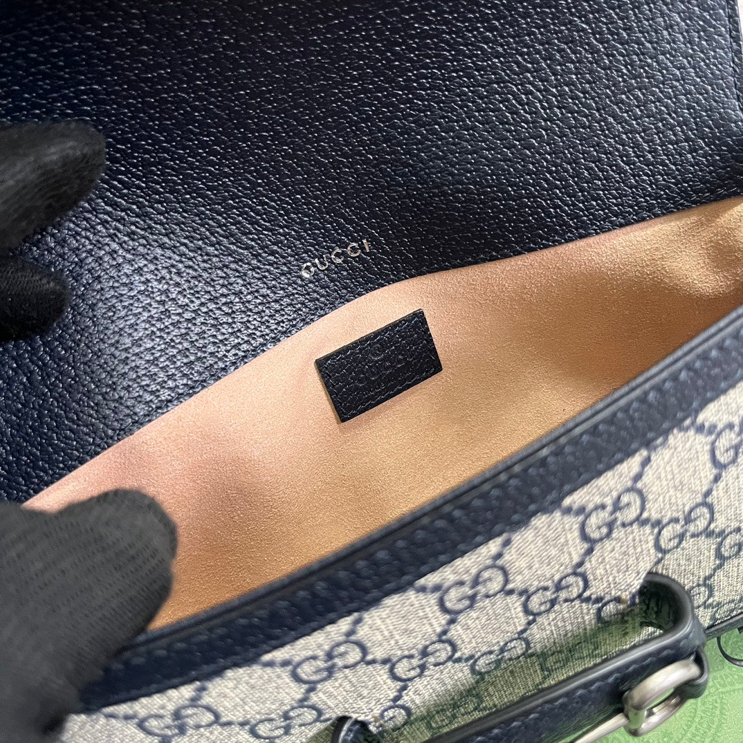 GG HORSEBIT 1955 BAG 24 IN BEIGE CANVAS AND BLACK CALFSKIN