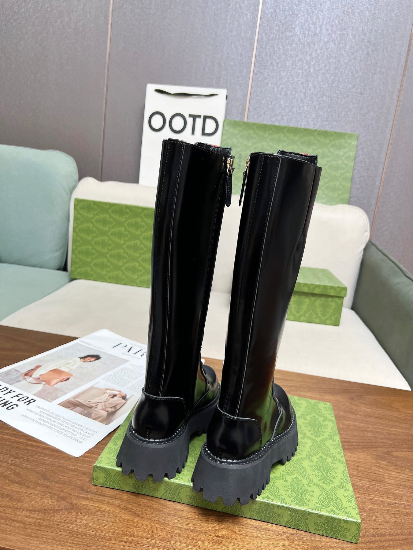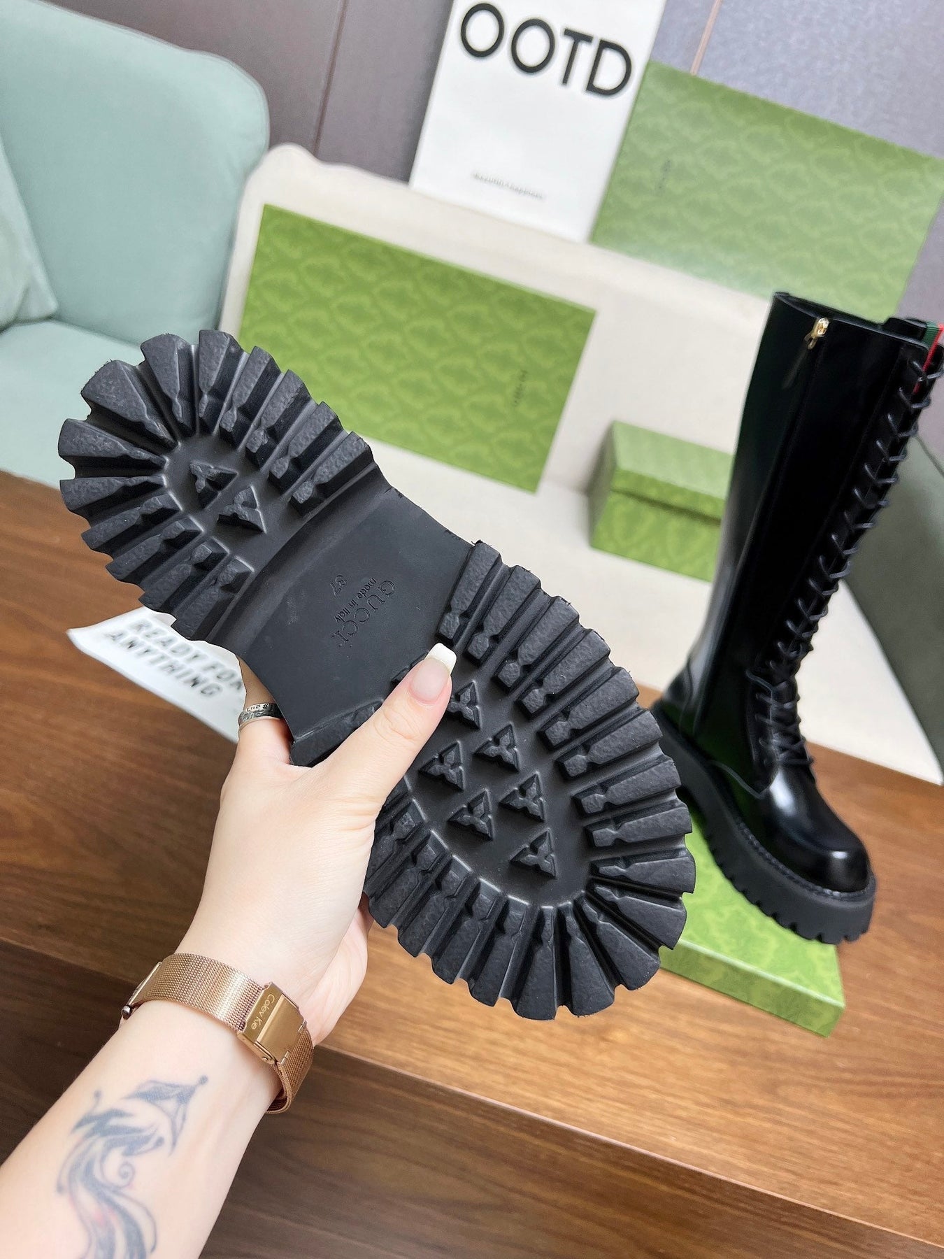 GG MARTIN LACE-UP KNEE BOOTS WITH WEB IN BLACK GLOSSY CALFSKIN