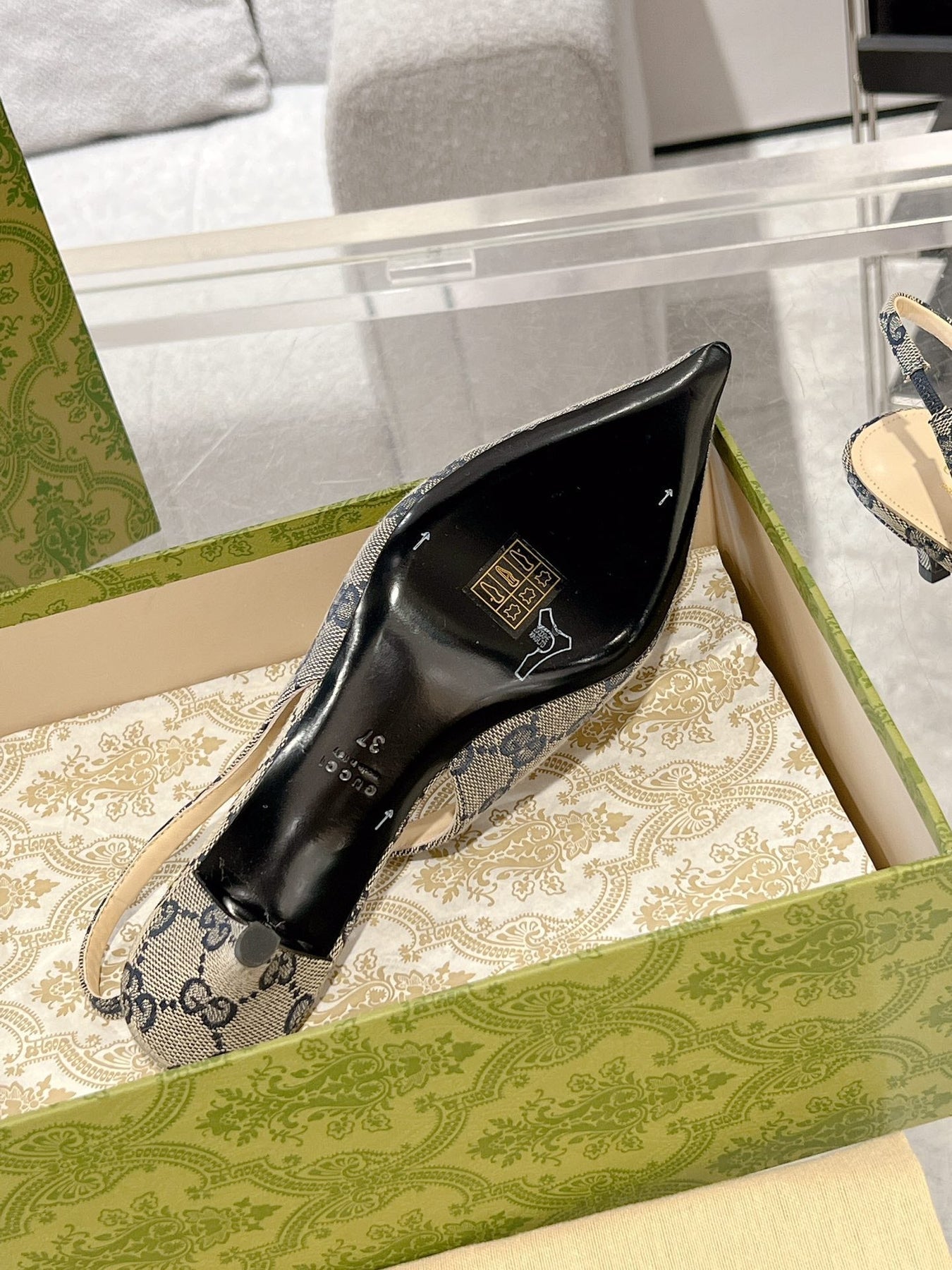 GG MID-HEELED SLINGBACK 4.5 CM IN PALE GRAY CANVAS