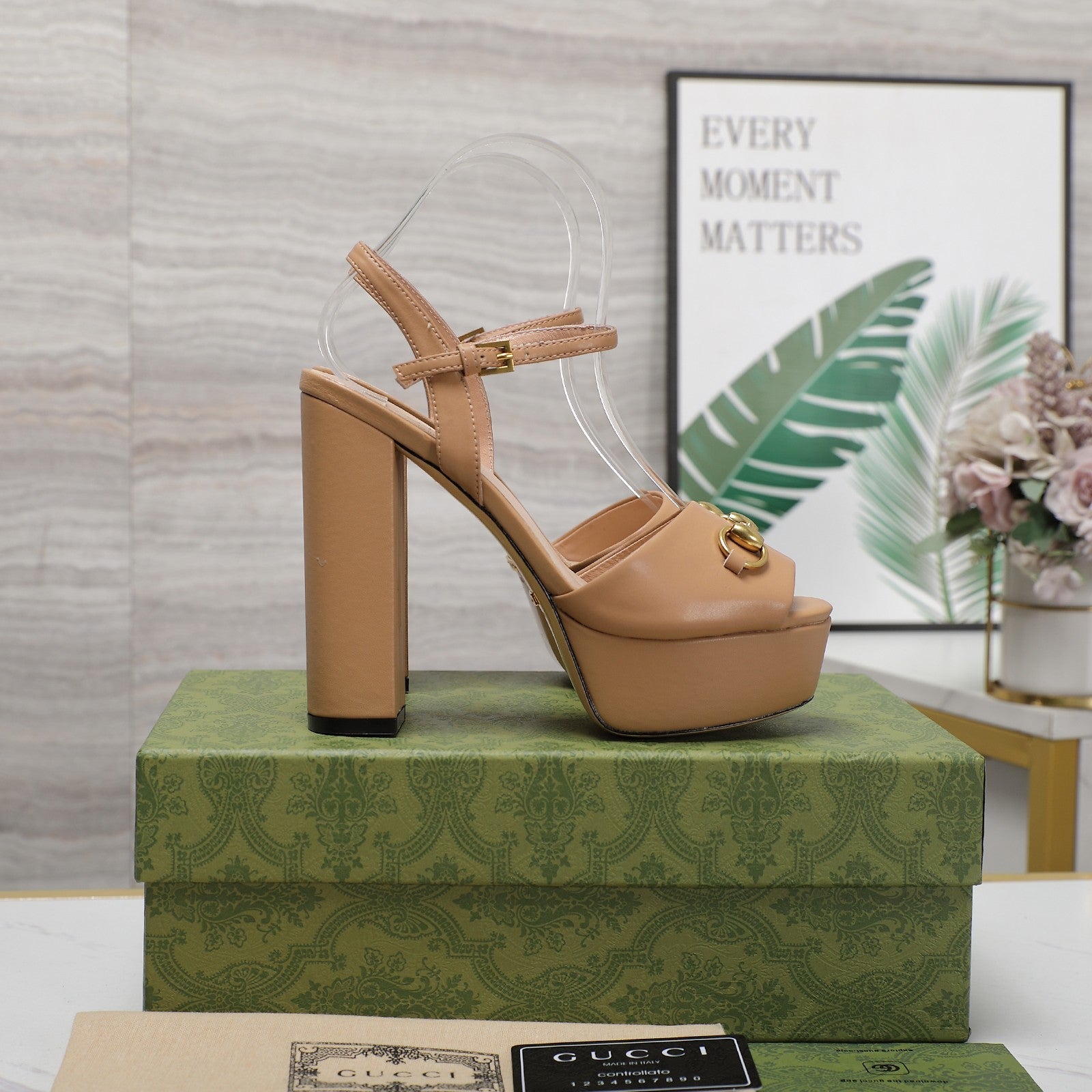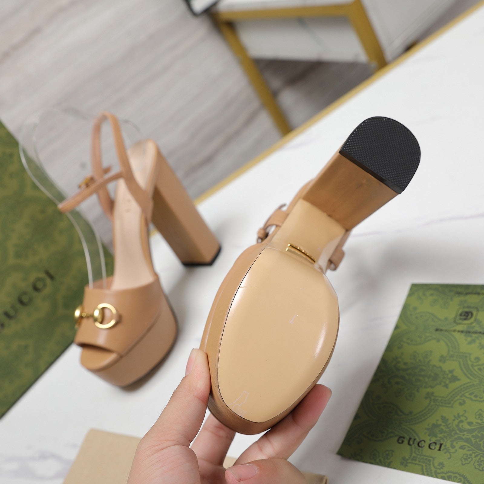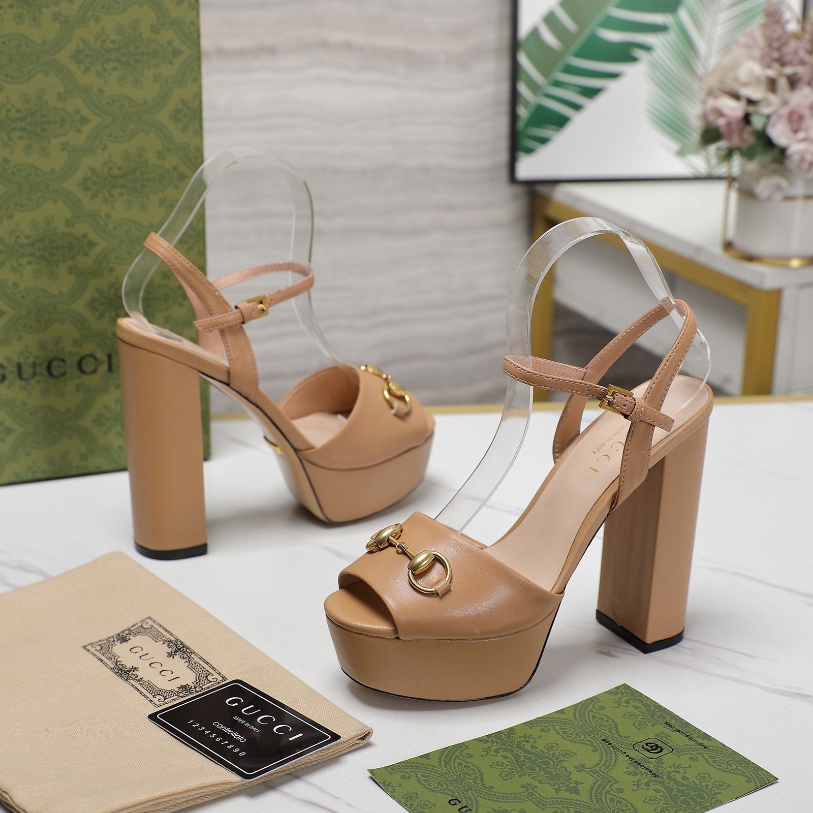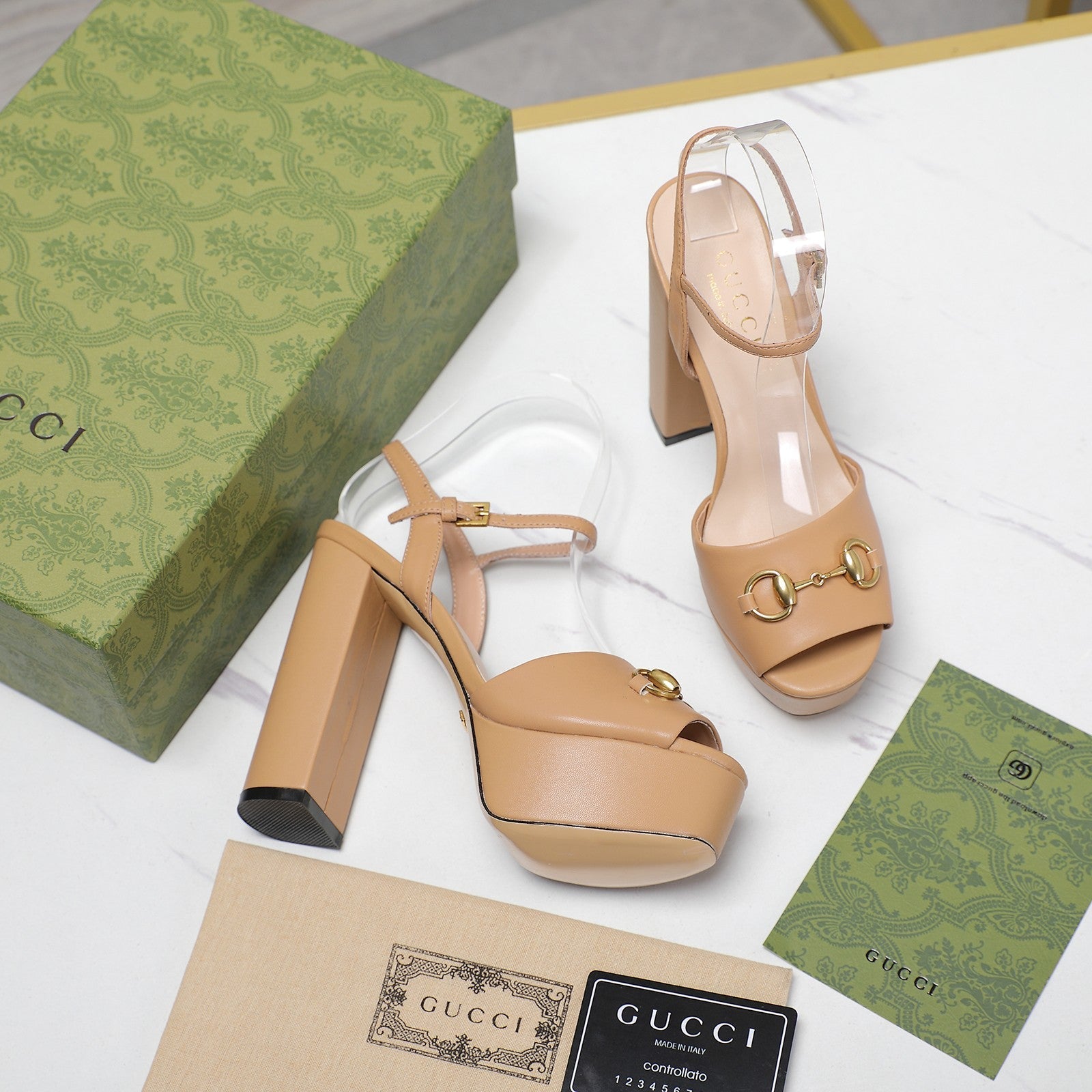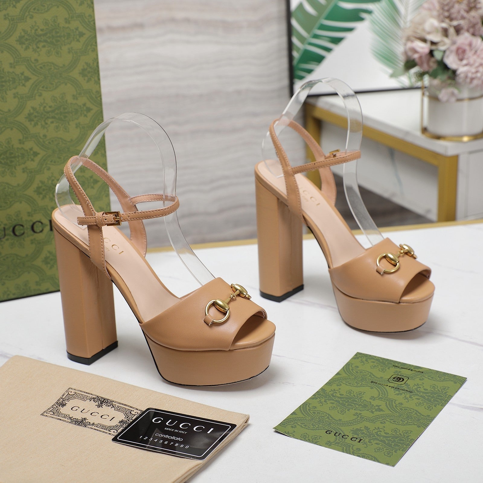 GG Sandales Cuir Noir Brown Tawny