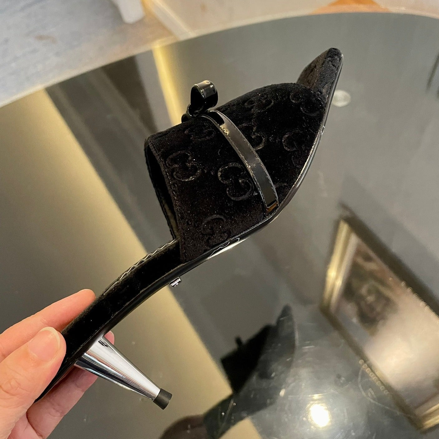 GG VELVET HIGH HEEL SANDALS WITH BEAUTIFUL LOGO DETAILS BLACK