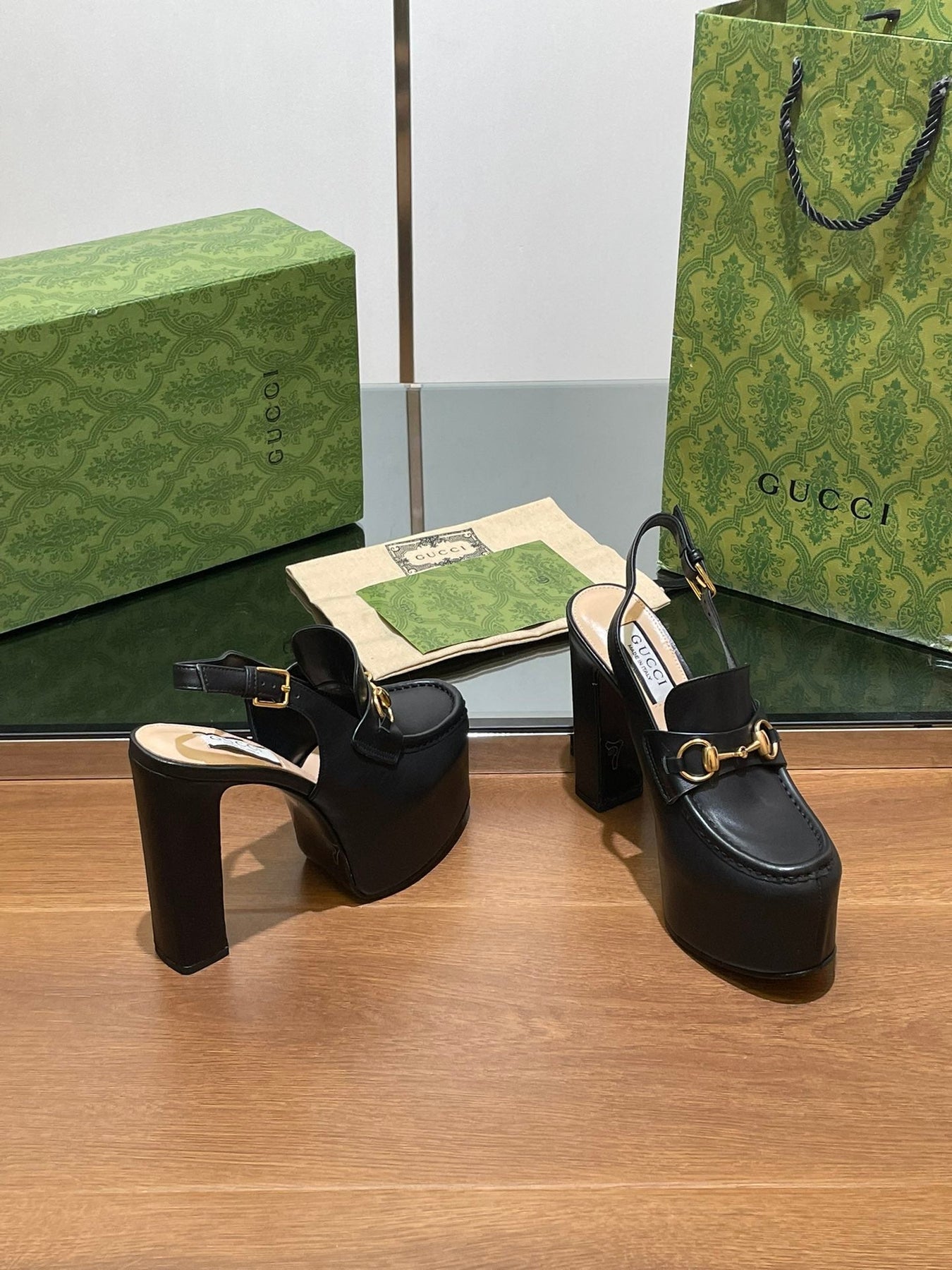 GG WOMEN'S HORSEBIT PLATFORM LOAFER SLINGBACK IN BLACK CALFSKIN