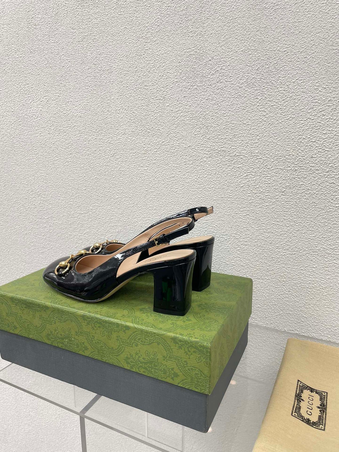 GG WOMEN'S HORSEBIT SLINGBACK 65MM IN BLACK CALFSKIN