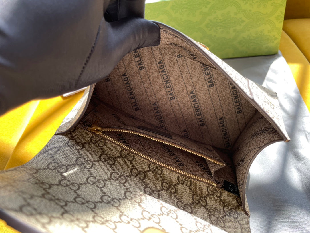 GG x BALENCIAGA HOURGLASS BAG 22 IN BEIGE EBONY MONOGRAM CANVAS GOLD HARDWARE