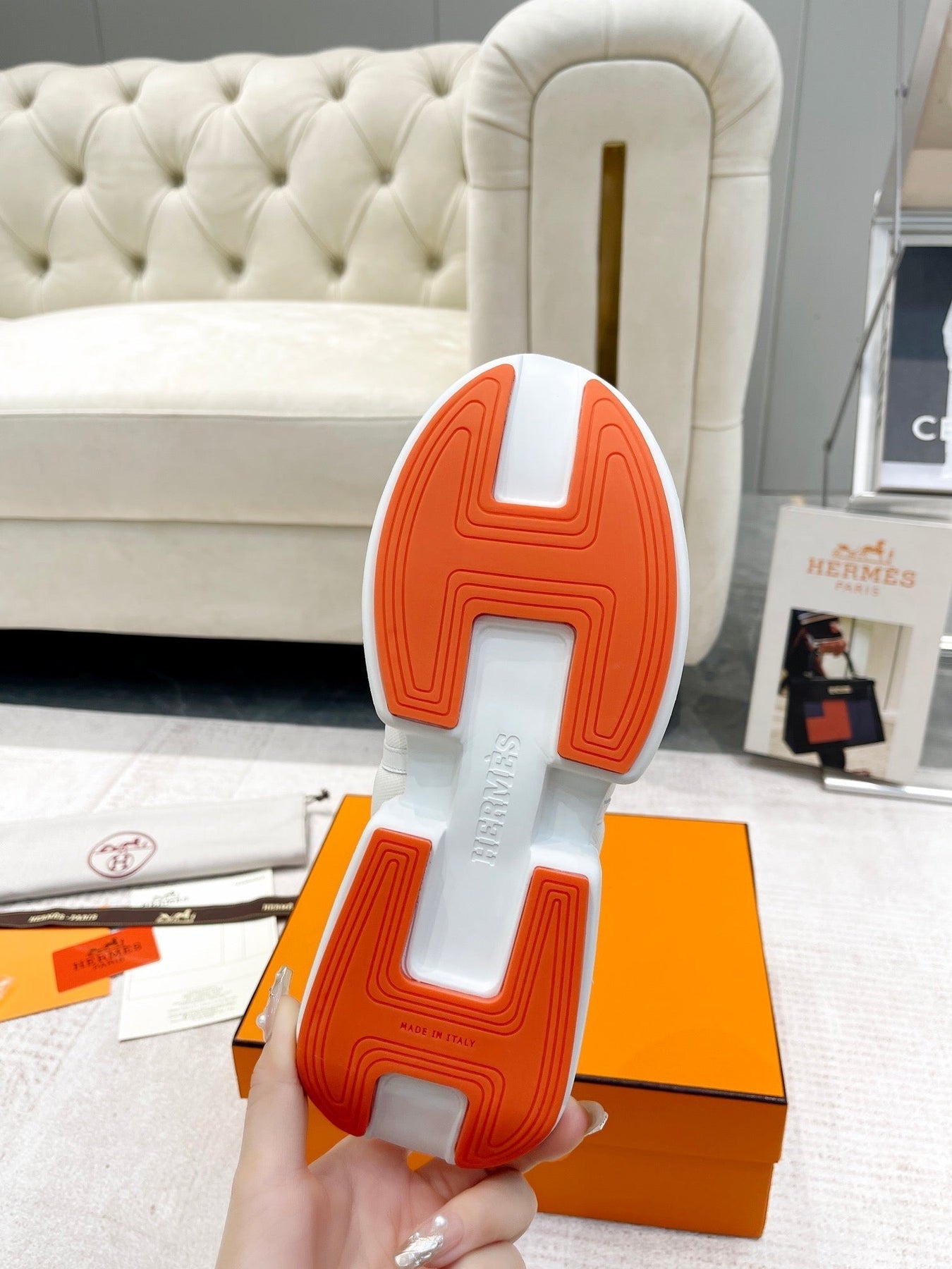 GIGA SNEAKER IN WHITE CREAM STITCHED MESH AND CALFSKIN