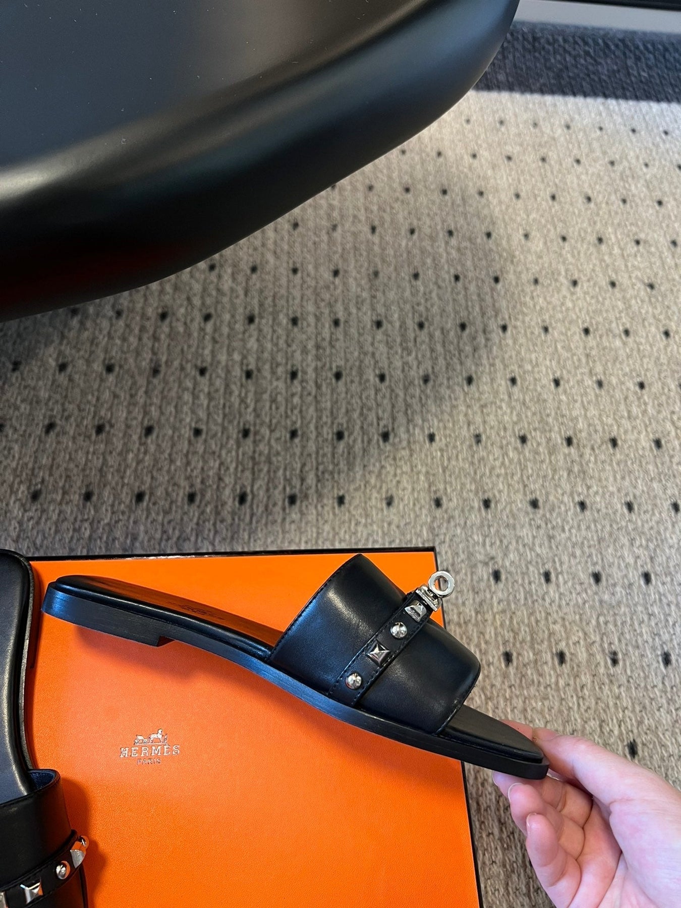 GIULIA FLAT SANDAL IN BLACK CALFSKIN