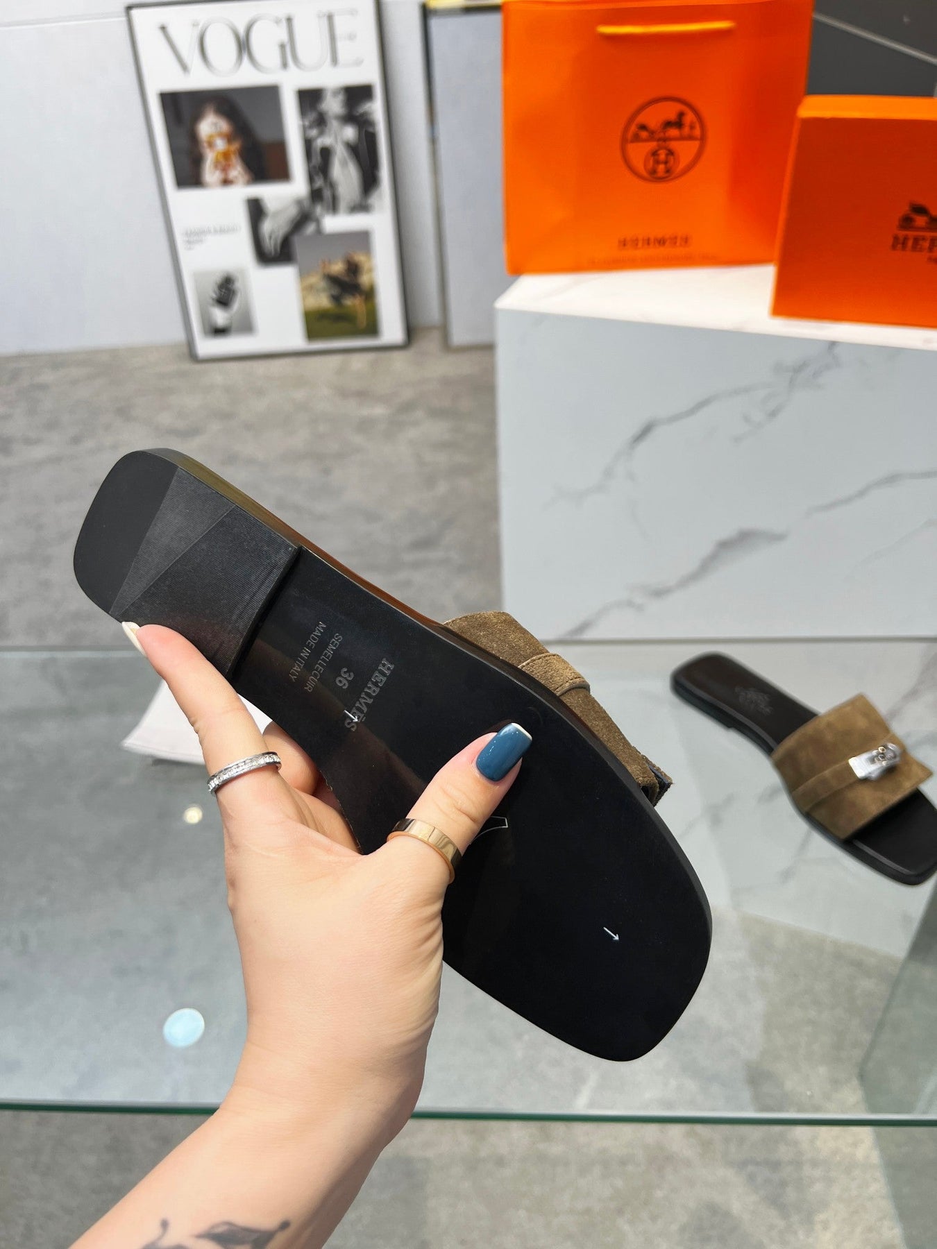 Giulia Sandal Brown Suede Black Calfskin