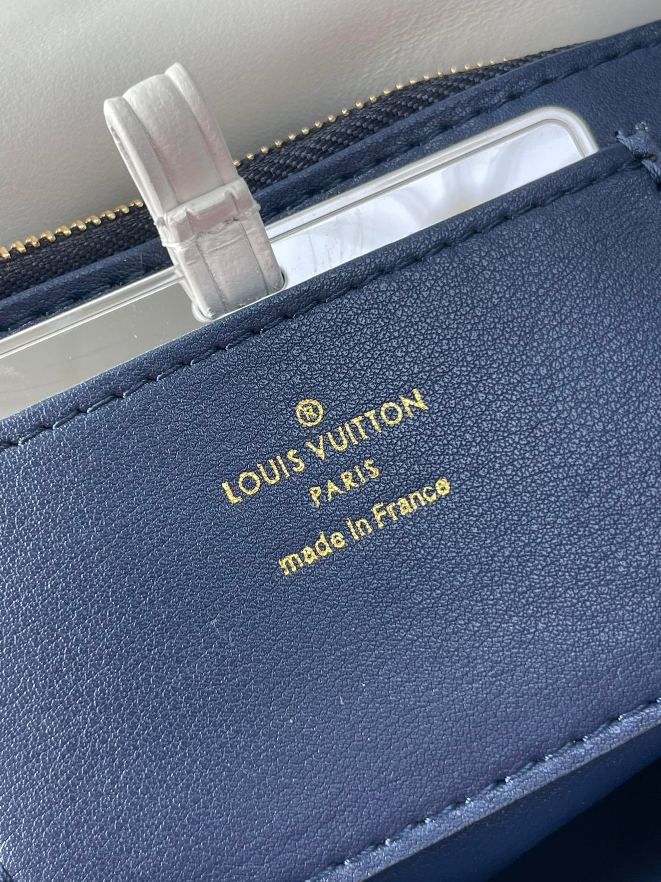 GO-14 MM 23 IN WHITE RED MIX NAVY BLUE QUILTED LAMBSKIN GOLD HARDWARE