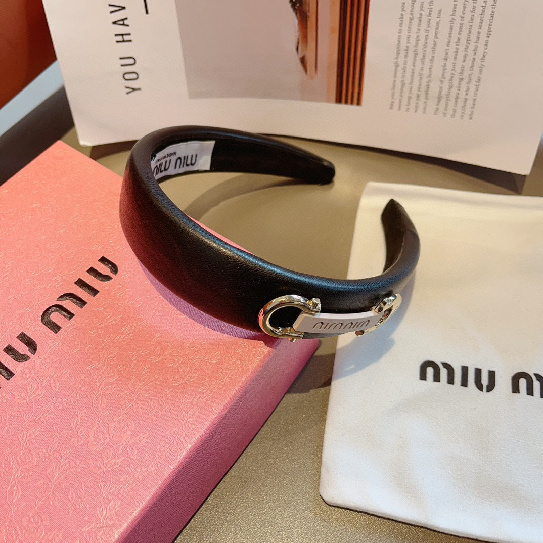 GOLD HORSEBIT HEADBAND IN BLACK CALFSKIN 412413