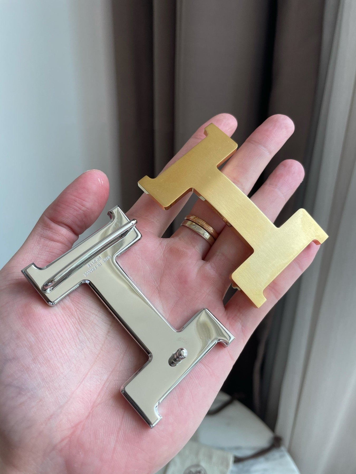 H CONTANCE BELT 38MM GOLD BUCKLE GREY BLACK LEATHER