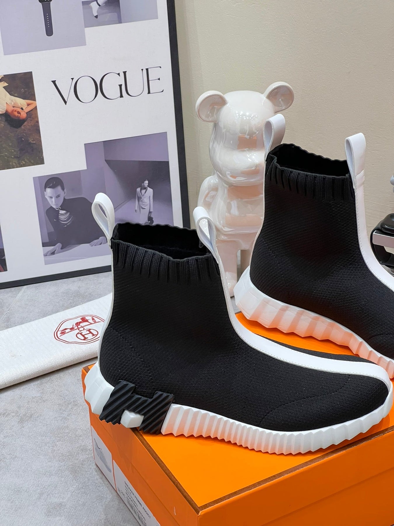 H FUN CLASSIC SNEAKER STYLISH BLACK AND WHITE LINE FABRIC