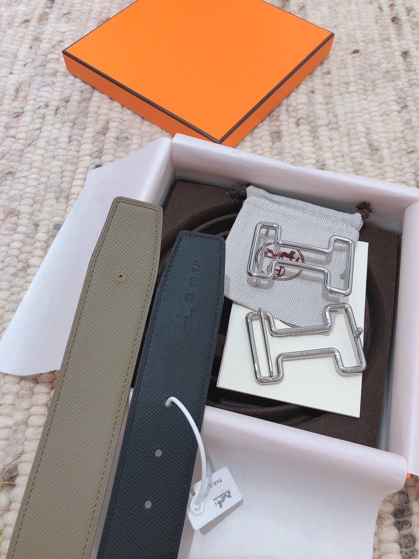H TONIGHT BELT 38MM BLACK GREEN GREY LEATHER