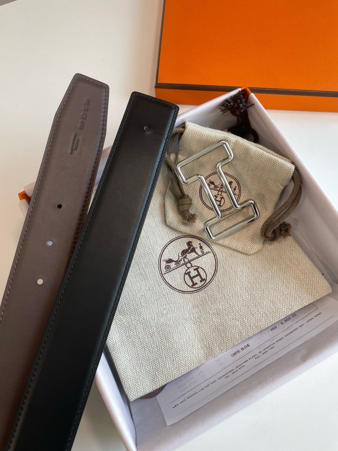 H TONIGHT BELT 38MM SILVER BUCKLE BLACK GRAPHITE LEATHER
