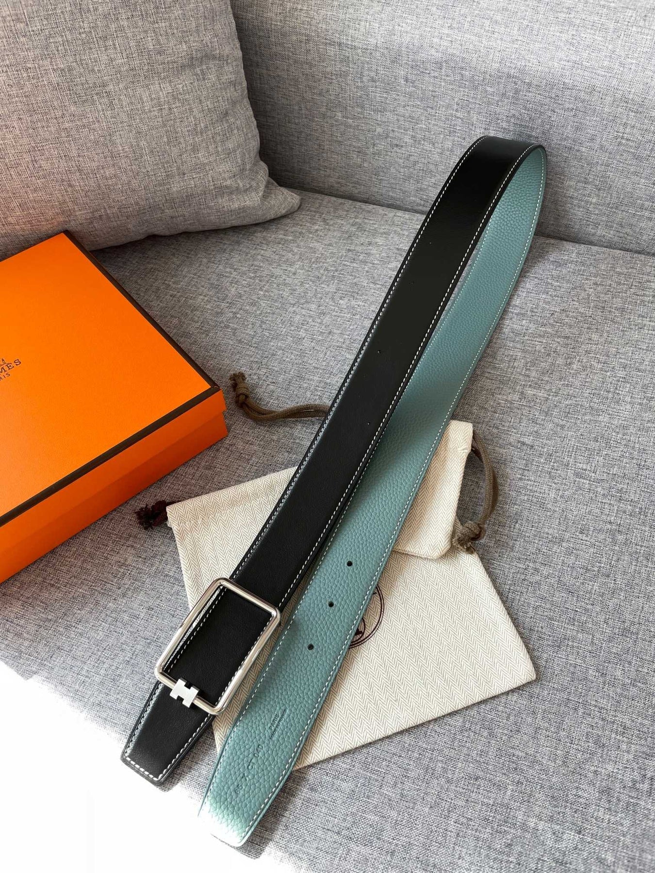 H TUBE BELT 38MM SILVER BUCKLE SKY BLUE BLACK LEATHER