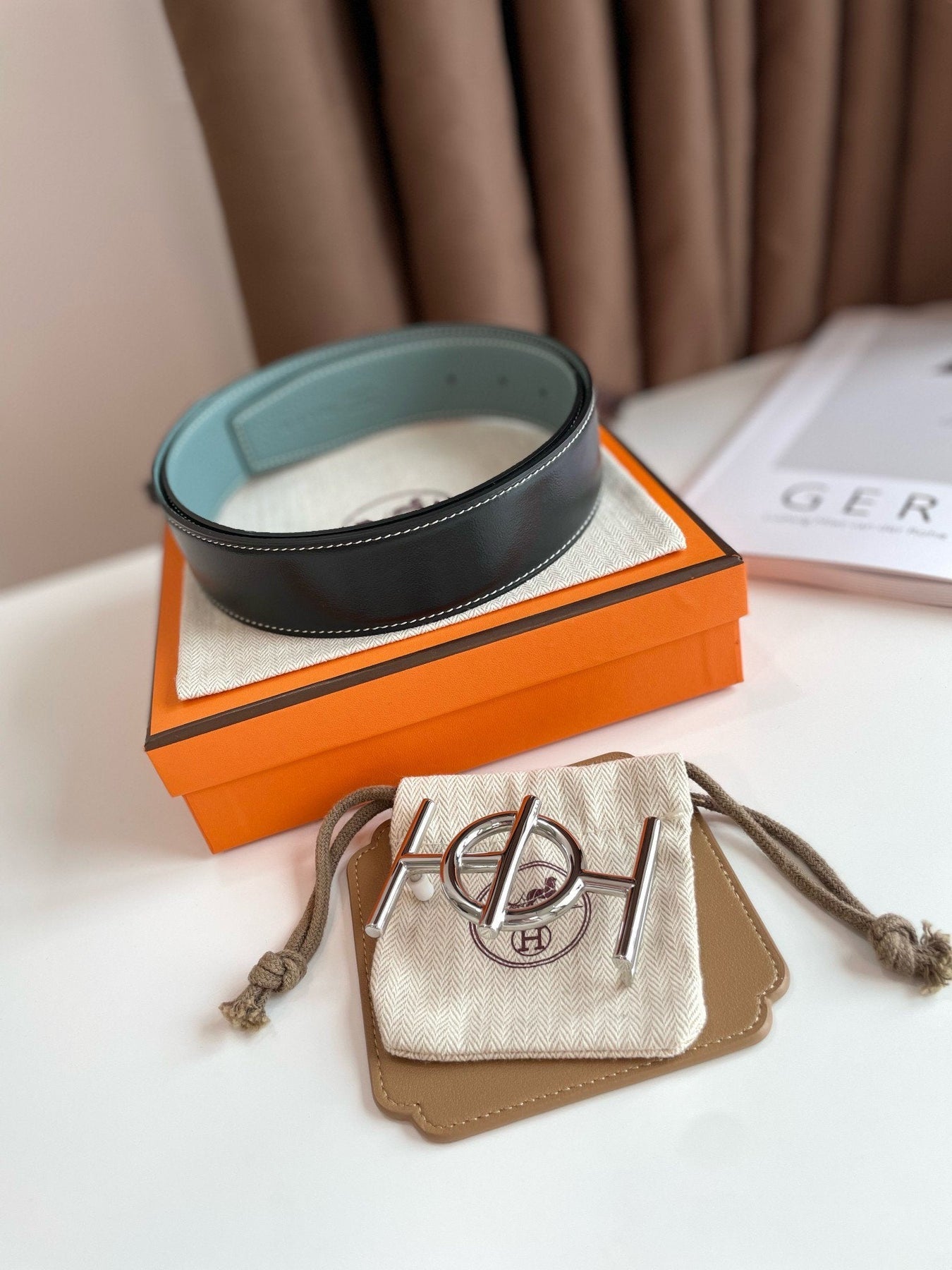 H ULYSSE BELT 38MM SILVER BUCKLE BLACK SKY BLUE LEATHER
