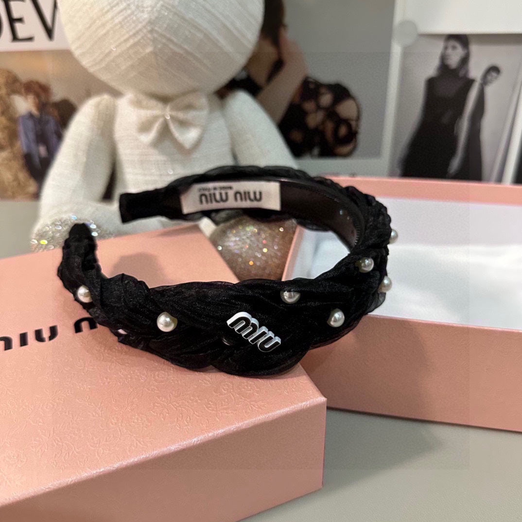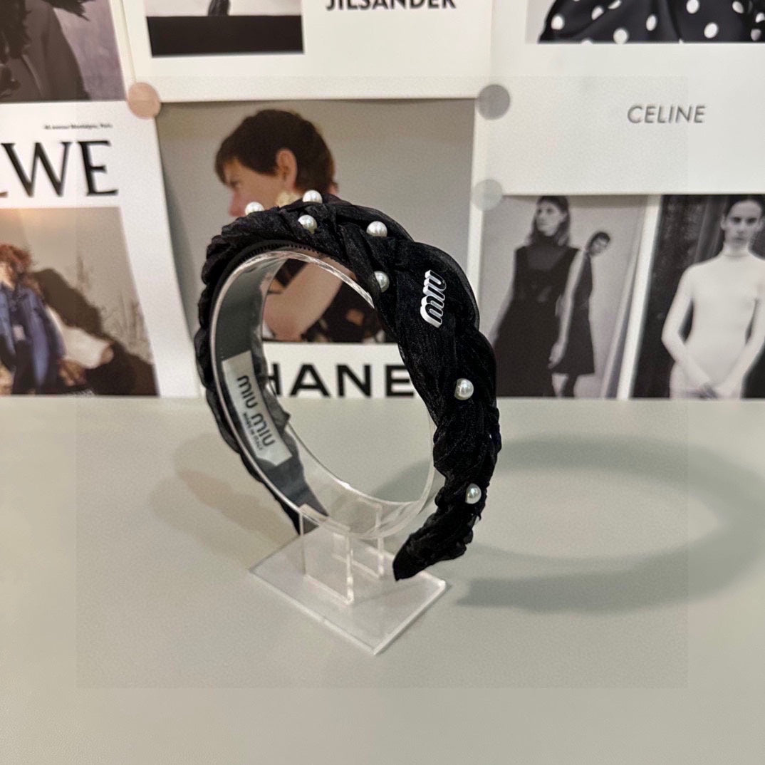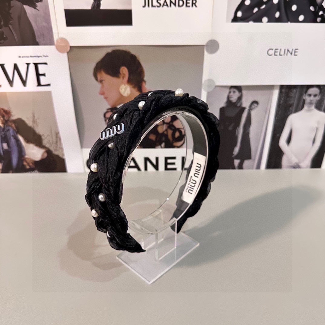 HAIR BAND IN BLACK CHIFFON PEARL-EMBELLISHED 395328