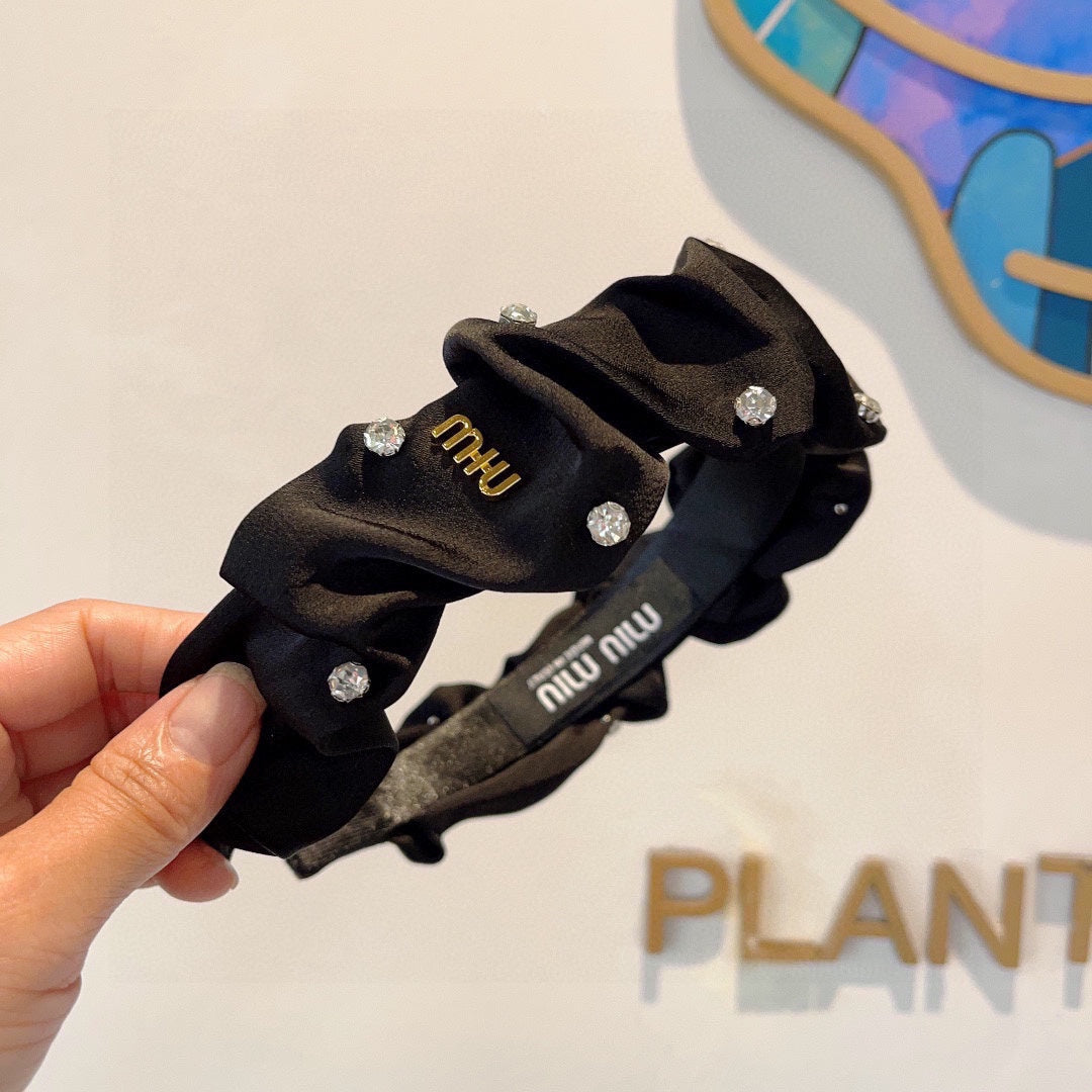 HEADBAND ATTACHED DIAMONDS IN BLACK SILK 412434