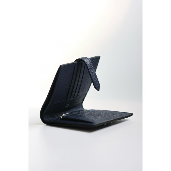 HERM Bearn Compact Handmade Wallet in Blue Saphir Epsom Calfskin