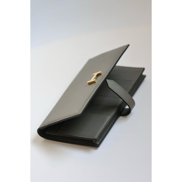HERM Bearn Long Handmade Wallet in Etain Swift Calfskin