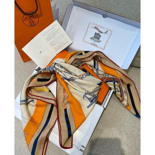HERM Beige/Orange Voitures en Equilibre Shawl 140