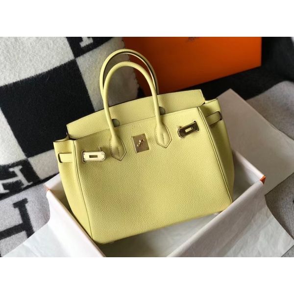 HERM Birkin 30cm Bag In Jaune Poussin Clemence Leather GHW