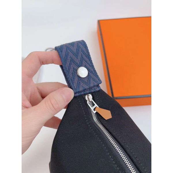 HERM Bride-a-Brac Large Case in Black Canvas with Zigzag Motifs