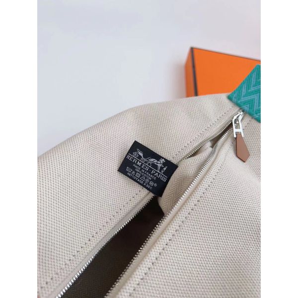 HERM Bride-a-Brac Large Case in Ecru Canvas with Green Zigzag Motifs
