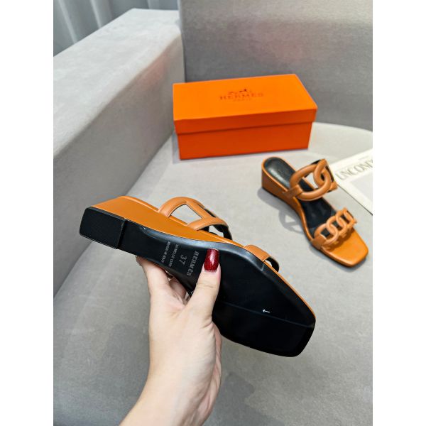 HERM Figari 55mm Wedge Sandals In Brown Nappa Leather